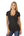 Women's Black Short Sleeve V-Neck Surplice Rib Knit Loose Casual Top - Small