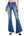 Khanomak Women's High Rise Stretch Zip Button Front Frayed Hem Flare Denim Jeans
