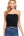 Womens- Round Neck Back Cross Strappy Woven Camisole Top