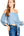 Khanomak Women's Cold Shoulder Round Neck Style Loose Fit Chambray Top Shirt